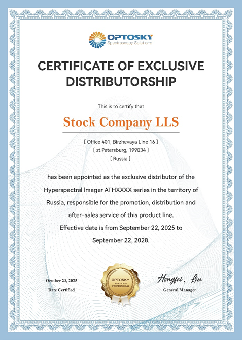 «ЛЛС» официально получила статус эксклюзивного дистрибьютора гиперспектральных систем серии ATHXXXX от ведущего китайского производителя спектроскопического оборудования Optosky Photonics Inc.