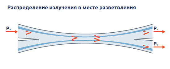 Рисунок 3 – Распределение оптической мощности внутри разветвителя