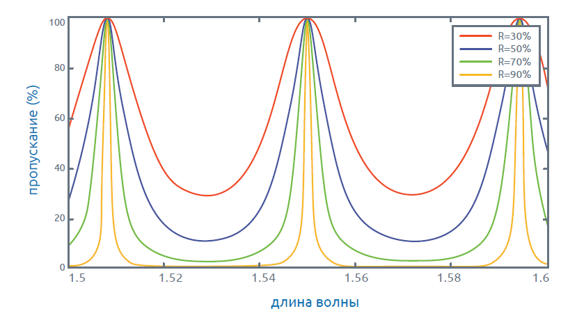 «Точность» спектра возрастает с увеличением отражающей способности зеркала – рисунок 10.
