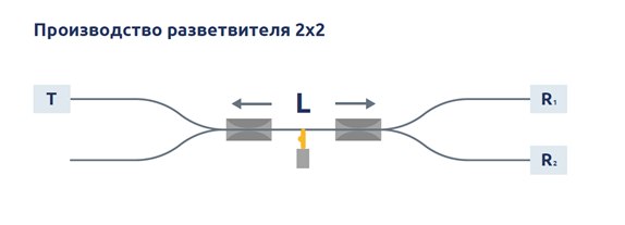 Метод тейпирования подразумевает плавное уменьшение диаметра волокна с последующим разведением на несколько каналов, и чаще всего используется для изготовления сплавных компонентов, таких как разветвители или спектральные уплотнители (WDM).
