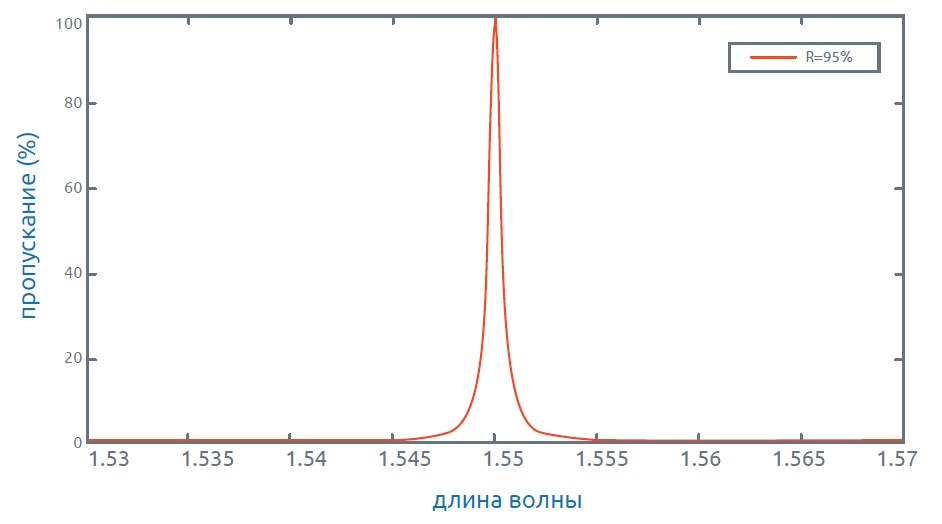 Рисунок 10 – Спектр пропускания фильтра при коэффициенте отражении зеркала в 95%