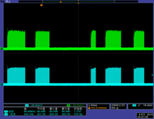 Лазер МОРА имеет улучшенные характеристики включения/выключения генерации излучения: быстрое время нарастания и спада фронтов импульсов. Представлены осциллограммы для лазера JPT YDFLP M6+.