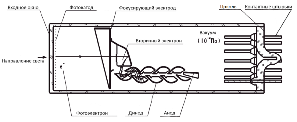 Принципиальная схема устройства динодного ФЭУ