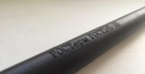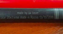 Рисунок 9. Сравнение маркировки трубы, выполненной на волоконном маркировщике (1064 нм) и УФ-маркировщике (355 нм): волоконный плавит материал, УФ-осветляет.