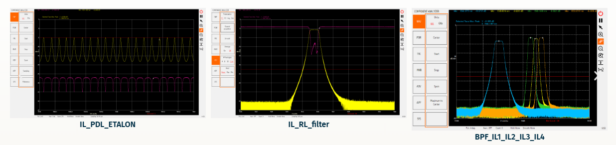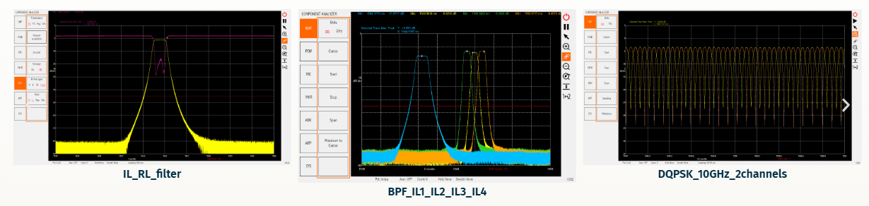 Прибор обеспечивает полностью автоматизированное измерение спектральных профилей вносимых (IL) и возвратных (RL) потерь, а также поляризационно-зависимых потерь (PDL) с фемтометрическим разрешением.