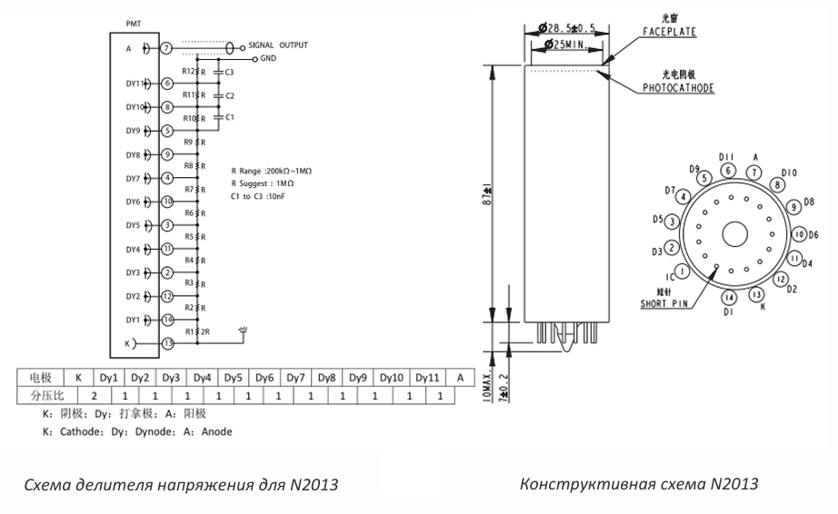 Принципиальная схема устройства динодного ФЭУ