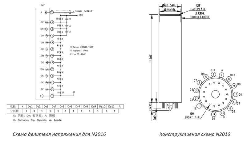 Принципиальная схема устройства динодного ФЭУ