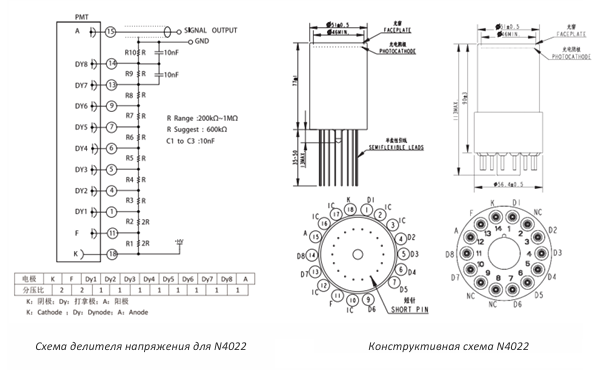 Принципиальная схема устройства динодного ФЭУ
