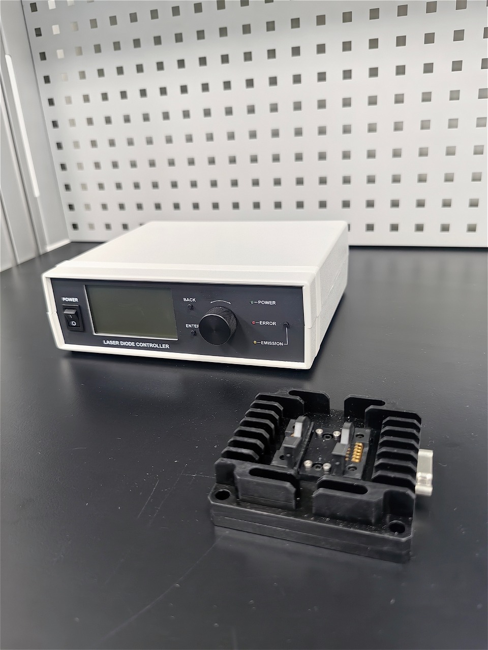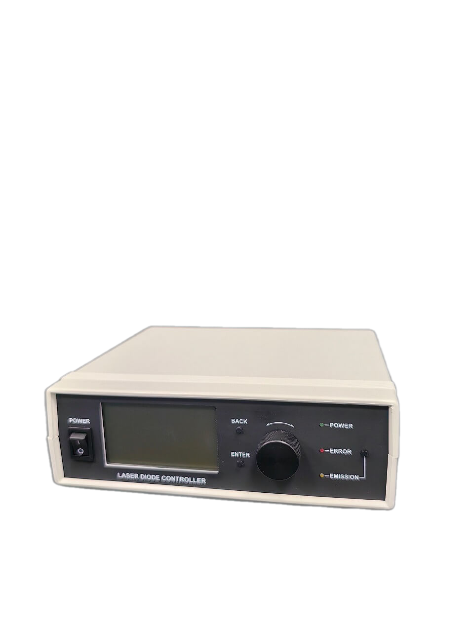 Блок управления выполнен в пластиковом настольном корпусе с органами управления и LCD дисплеем для отображения информации. Органы управления контроллера позволяют задавать и контролировать основные параметры лазерного диода (ток, температура, показания контрольного фотодиода и др.).