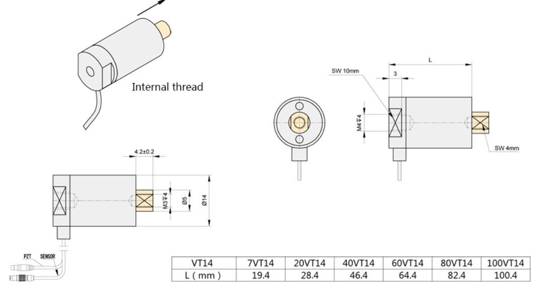 В пьезоактуаторах серии VT14 используется конструкция, выдерживающая крутящий момент, которая позволяет эффективно устранять кручение, создаваемое внешними механизмами, и защищать актуаторы.